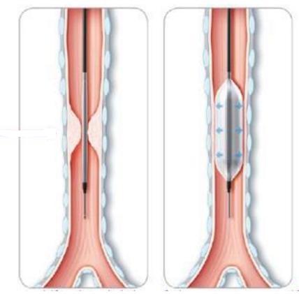 Slika. Endoskopska dilatacija suženja probavne cijevi primjenom balona.